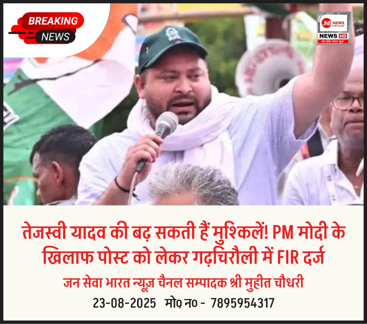 राजद नेता और पूर्व उपमुख्यमंत्री तेजस्वी यादव की मुश्किलें बढ़ सकती हैं। प्रधानमंत्री नरेंद्र मोदी के खिलाफ कथित रूप से आपत्तिजनक सोशल मीडिया पोस्ट को लेकर तेजस्वी यादव के खिलाफ महाराष्ट्र के गढ़चिरौली में एफआईआर दर्ज हुई है।