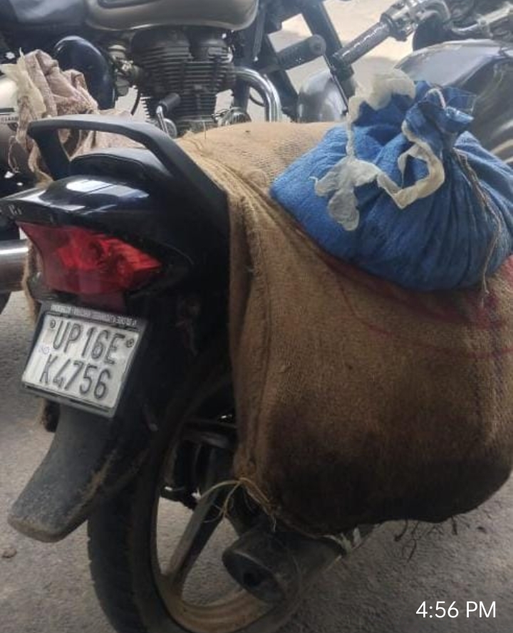 हिंदू युवा वाहिनी कार्यकर्ताओं ने मोटरसाइकिल पर ले जाएजा रहे मीट को पकड़ कर पुलिस को सौपा