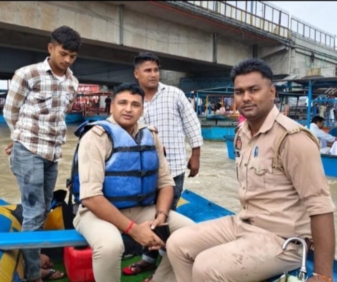 गढ़मुक्तेश्वर/जनपद की तीर्थ नगरी ब्रजघाट गंगा में मूर्ति विसर्जन को लेकर एनजीटी कोर्ट के आदेश अनुपालन में पुलिस क्षेत्राधिकारी गढ़मुक्तेश्वर वरुण मिश्रा के द्वारा गंगा में मूर्ति विसर्जन करने को लेकर रोक लगाने के दिशा निर्देश दिए गए थे। और उसके बावजूद भी गंगा में मूर्ति विसर्जन कराने की सोशल मीडिया पर वीडियो फोटो वायरल होने को लेकर पुलिस क्षेत्राधिकारी वरुण मिश्रा के दिशा निर्देशन में कोतवाली प्रभारी नीरज कुमार पुलिस बल के साथ तीर्थ नगर ब्रजघाट पहुंचे। और मामले का गहनता से संज्ञान लेते हुए सभी नाविकों को गंगा में मूर्ति विसर्जन कराने और बढ़ते जलस्तर को लेकर नाव के संचालन पर पूर्ण प्रतिबंध लगाते हुए सख्त दिशा निर्देश दिए हैं