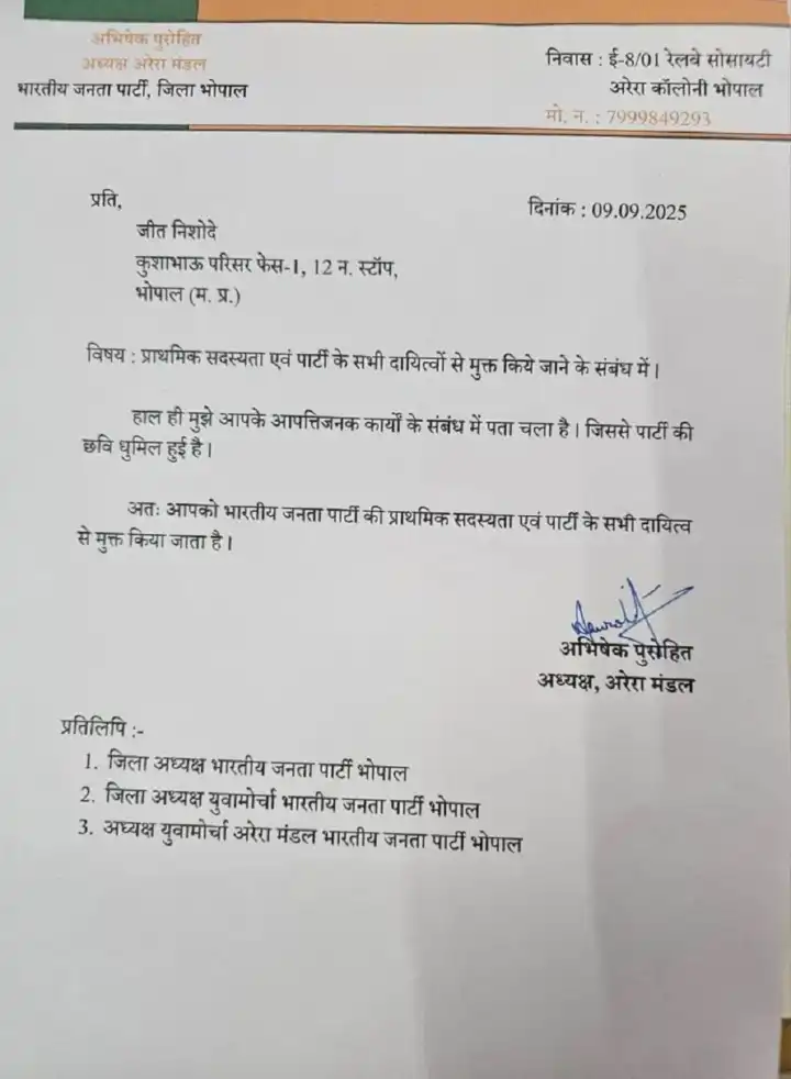 वहीं, वीडियो वायरल होने के बाद पार्टी ने भाजपा नेता जीत निशोदे के खिलाफ कार्रवाई करते हुए उन्हें पार्टी से निकाल दिया है। अरेरा मंडल के अध्यक्ष अभिषेक पुरोहित ने प्राथमिक सदस्यता और पार्टी के सभी दायित्वों से मुक्त कर दिया।