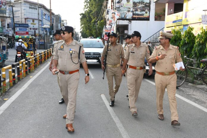 वरिष्ठ पुलिस अधीक्षक मुजफ्फरनगर द्वारा पैदल गश्त कर सुरक्षा व यातायात व्यवस्था का लिया जायजा।