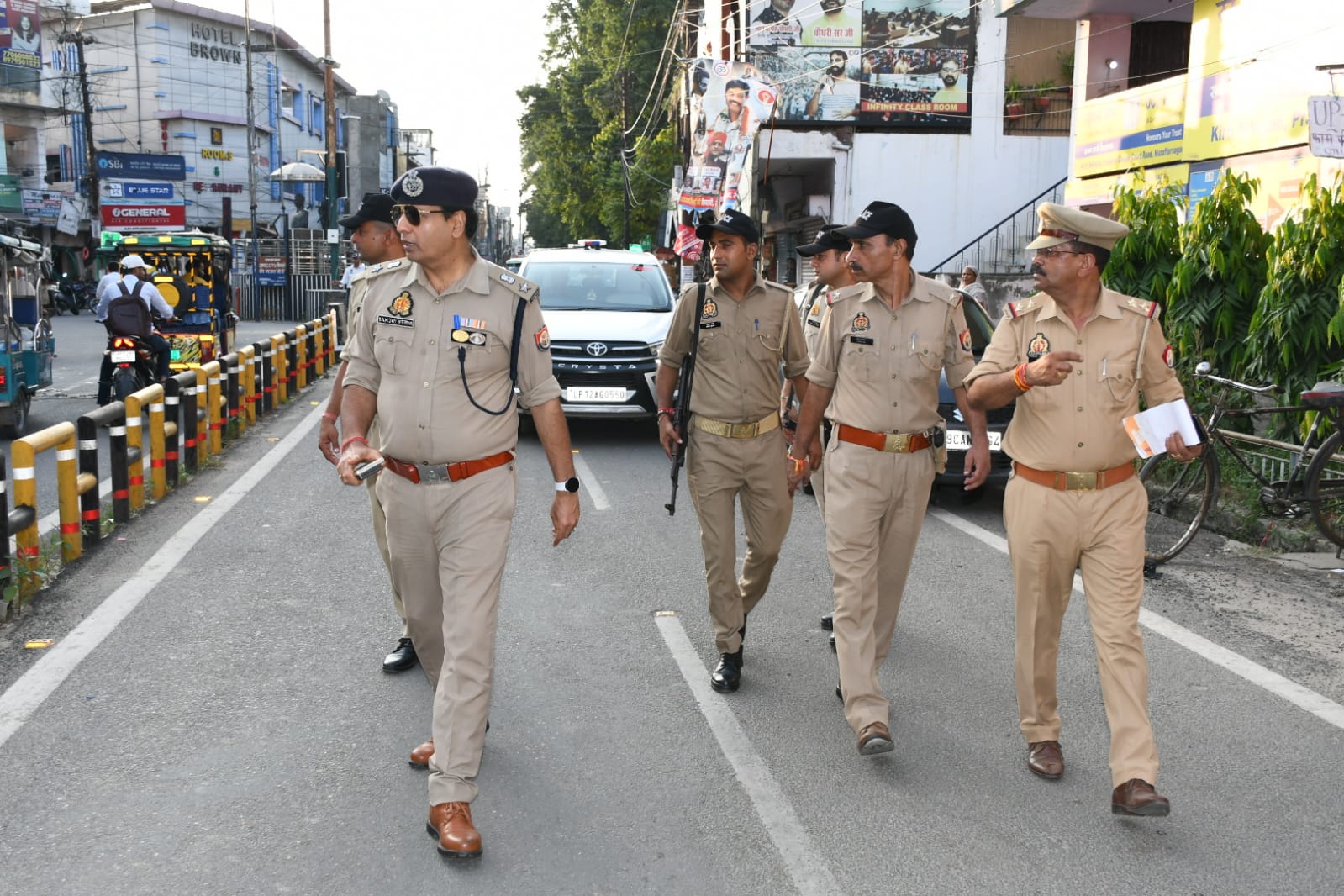 जनपद मुजफ्फरनगर पुलिस द्वारा जनपद में सुरक्षा व्यवस्था सुदृढ रखने तथा यातायात व्यवस्था सुचारु रखने हेतु वरिष्ठ पुलिस अधीक्षक मुजफ्फरनगर श्री संजय कुमार वर्मा के निर्देशन में सम्पूर्ण जनपद के थानाक्षेत्रों में पुलिस बल द्वारा पैदल गश्त/फ्लैग मार्च किया जा रहा है। आज दिनांक 15.09.2025 को वरिष्ठ पुलिस अधीक्षक मुजफ्फरनगर श्री संजय कुमार वर्मा महोदय द्वारा पुलिस बल के साथ प्रकाश चौक से पैदल गश्त करते हुए सुरक्षा एवं यातायात व्यवस्था का जायजा लिया गया। महोदय द्वारा इस दौरान अधिनस्थों को आवश्यक दिशा-निर्देश दिये गये।