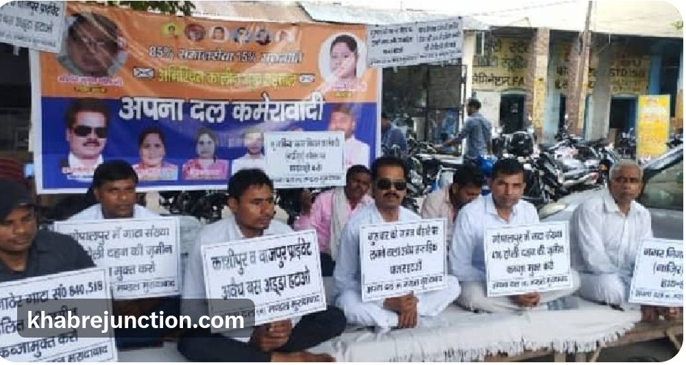 मुरादाबाद। मुरादाबाद मण्डल अध्यक्ष डॉ. रामेश्वर दयाल तुरैहा के नेतृत्व में अपना दल (कमेरवादी) के पदाधिकारी एवं कार्यकर्ता मंगलवार को पुनः जिलाधिकारी कार्यालय पर अनिश्चितकालीन भूख हड़ताल पर बैठ गए। पार्टी की प्रमुख मांगों में गोपालपुर स्थित गाटा संख्या 476 होली दहन की जमीन, ग्राम मैनाठेर की गाटा संख्या 840 व 518 दलित की जमीन, ग्राम लांकड़ी फ़ाज़लपुर की गाटा संख्या 2115 में 5767.89 वर्ग मीटर भूमि तथा गाटा संख्या 3807/20 (0.2590 हे0), 2807/48 (0.2830 हे0) और 90 एकड़ जमीन को कब्जामुक्त कराना शामिल है।इसके साथ ही कार्यकर्ताओं ने आर.आर. एंटरप्राइजेज द्वारा घूस लेकर 632 सफाई कर्मचारी रखे जाने की जांच, दिल्ली रोड गागन चौराहे पर लगने वाले अवैध मंगल व गुरुवार साप्ताहिक बाजार को हटाने, महानगर के बीच स्थित काशीपुर और बाजपुर के अवैध प्राइवेट बस अड्डों को बंद कराने तथा रेलवे स्टेशन से इंपीरियल तिराहा तक दोनों ओर के अतिक्रमण को हटवाने की मांग की।
