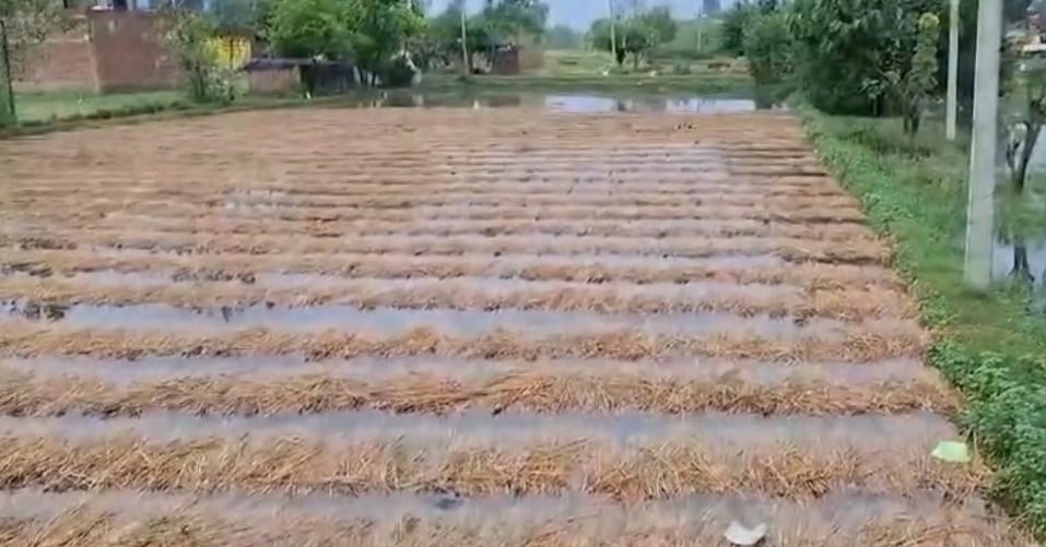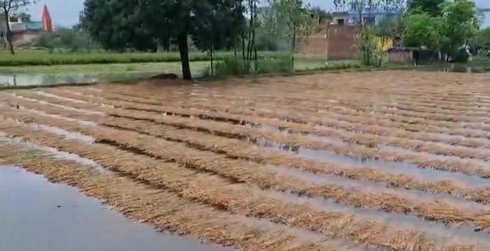 मुरादाबाद में झमाझम बारिश: खेतों मेंःकटकर पड़ी धान की फसल हुई बर्बाद