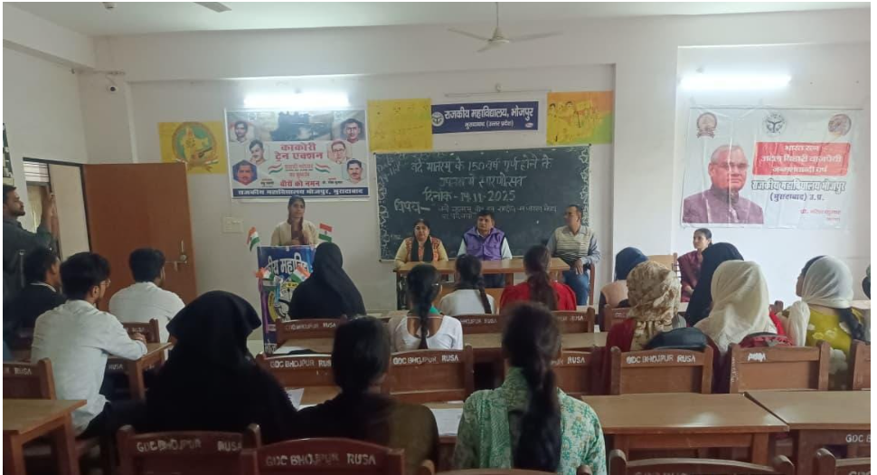 नगर पंचायत भोजपुर धर्मपुर शुक्रवार को राजकीय महाविद्यालय भोजपुर, मुरादाबाद में प्राचार्य डॉ. नरेश कुमार की अध्यक्षता में वंदे मातरम् के 150 वर्ष पूर्ण होने के उपलक्ष्य में मनाए जा रहे।