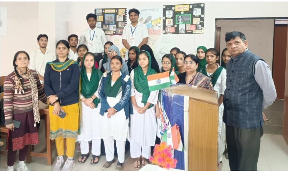 मुरादाबाद। बृहस्पतिवार को राजकीय महाविद्यालय भोजपुर मुरादाबाद में प्राचार्य डॉ. नरेश कुमार की अध्यक्षता में मिशन शक्ति फेस 5.0 कार्यक्रम के अंतर्गत पोस्टर निर्माण गतिविधि का आयोजन किया गया। जिसका शीर्षक भारतीय वीरांगना था। इस अवसर पर प्राचार्य डॉ. नरेश कुमार ने छात्र,छात्राओं को 1857 की क्रांति में रानी लक्ष्मीबाई और बेगम हजरत महल के योगदान के बारे में सविस्तार बताया। कार्यक्रम का संचालन डॉक्टर पूजा निरमानिया ने किया।द्वितीय चरण में दिनांक 19 नवंबर से 25 नवंबर तक मनाए जा रहे विश्व धरोहर सप्ताह के अंतर्गत इतिहास विभाग में भाषण प्रतियोगिता का आयोजन किया गया। जिसका विषय भारतीय सभ्यता एवं संस्कृति विविधता में एकता था। प्रतियोगिता में रिया, उबैद ,अरबाज और अन्य छात्र ,छात्राओं ने प्रतिभाग किया। कार्यक्रम का संचालन सुश्री मधु त्यागी ने किया।इस अवसर पर समस्त स्टाफ उपस्थित रहा। कार्यक्रम के अंत में धन्यवाद ज्ञापन सचिन अग्रवाल ने दिया।