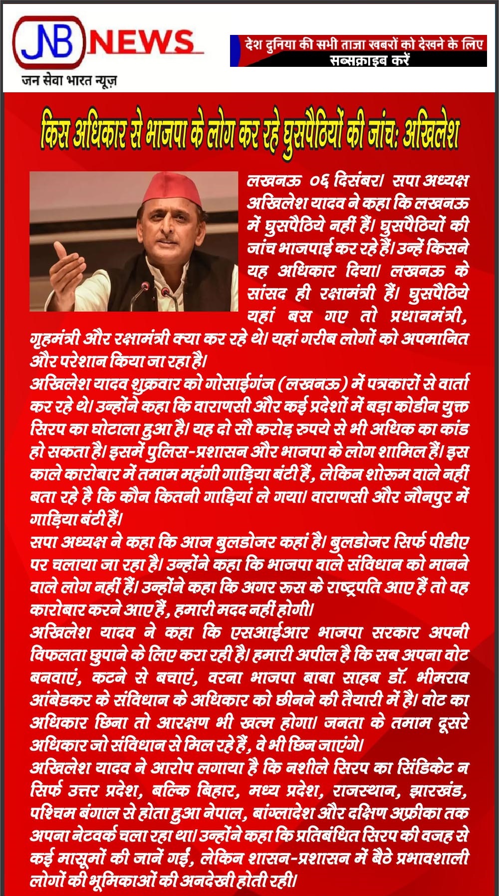 HomeBlogकिस अधिकार से भाजपा के लोग कर रहे घुसपैठियों की जाँच: अखिलेश Blog किस अधिकार से भाजपा के लोग कर रहे घुसपैठियों की जाँच: अखिलेश By Mohd Anas 6 December 2025 0 26 Share FacebookTwitterPinterestWhatsApp Share FacebookTwitterPinterestWhatsApp Previous articleबलवापुर में दबंगों ने आधा दर्जन लोगों को पीटा मुकदमा दर्जNext articleसर्दी के मौसम को देखते हुए बहादुरगढ़ पुलिस ने वाहनों पर लगाए रिफ्लेक्टर Mohd Anas RELATED ARTICLES Blog मुरादाबाद के.बिलारी में नाबालिग लड़की को भगाने वालाआरोपी गिरफ्तार: पॉक्सो एक्ट सहित विभिन्नधाराओं में केस दर्ज, जेल भेजा गया 27 December 2025 Blog मुरादाबाद के.पुलिस ने किया महिला सम्मानसमारोहः मिशन शक्ति के तहत महिलाओं को.सुरक्षा कानूनों की जानकारी दी गई 26 December 2025 Blog समाजवादी पार्टी के सबसे मजबूत दावेदार हैं सुधीर चौहान 26 December 2025 LEAVE A REPLY Cancel reply Comment: Please enter your comment! Name:* Please enter your name here Email:* You have entered an incorrect email address! Please enter your email address here Website: Save my name, email, and website in this browser for the next time I comment. - Advertisment - - Advertisment - Most Popular मुरादाबाद के.बिलारी में नाबालिग लड़की को भगाने वालाआरोपी गिरफ्तार: पॉक्सो एक्ट सहित विभिन्नधाराओं में केस दर्ज, जेल भेजा गया मुरादाबाद के.पुलिस ने किया महिला सम्मानसमारोहः मिशन शक्ति के तहत महिलाओं को.सुरक्षा कानूनों की जानकारी दी गई समाजवादी पार्टी के सबसे मजबूत दावेदार हैं सुधीर चौहान मुरादाबाद में रेलवे ट्रैक पर लेटा युवक, सामने से आ रही थी मालगाड़ी, लोगों ने देखा तो निकल गयी चीख, पूरा मामला जान हिल... Load more