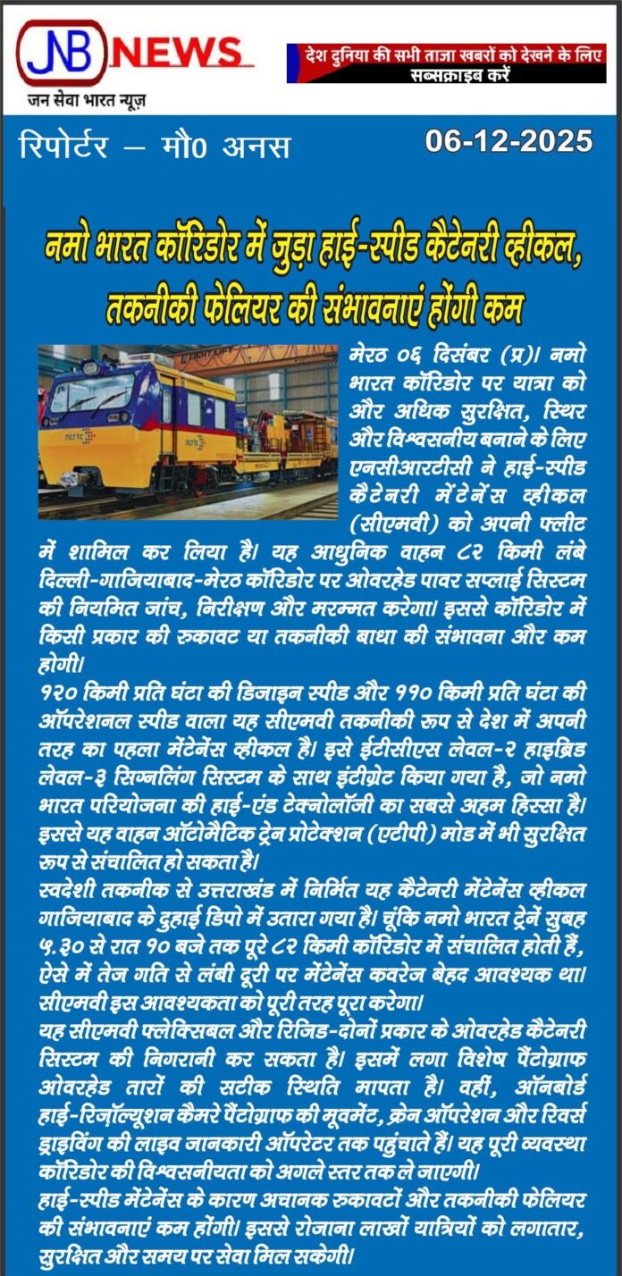 HomeBlogनमो भारत कॉरिडोर में जुड़ा हाई-स्पीड कैटेनरी व्हीकल, तकनीकी फेलियर की संभावनाऐ... Blog नमो भारत कॉरिडोर में जुड़ा हाई-स्पीड कैटेनरी व्हीकल, तकनीकी फेलियर की संभावनाऐ होंगी कम By Mohd Anas 6 December 2025 0 31 Share FacebookTwitterPinterestWhatsApp Share FacebookTwitterPinterestWhatsApp Previous articleसर्दी के मौसम को देखते हुए बहादुरगढ़ पुलिस ने वाहनों पर लगाए रिफ्लेक्टरNext articleमुरादाबाद।चक्कर की मिलक मैं रामगंगा नदी किनारे बना मौत का सेल्फी प्वाइंट। लगभग 200 फिट ऊंची पानी की टँकी बना सेल्फी पॉइंट। आए दिन युवा पानी की टंकी के ऊपर चढ़कर ले रहे सेल्फी। किसी भी दिन हो सकता है कोई बड़ा हादसा। रोमांच के लिए अपनी जान को दाव पर लगा रहे युवक Mohd Anas RELATED ARTICLES Blog मुरादाबाद के.बिलारी में नाबालिग लड़की को भगाने वालाआरोपी गिरफ्तार: पॉक्सो एक्ट सहित विभिन्नधाराओं में केस दर्ज, जेल भेजा गया 27 December 2025 Blog मुरादाबाद के.पुलिस ने किया महिला सम्मानसमारोहः मिशन शक्ति के तहत महिलाओं को.सुरक्षा कानूनों की जानकारी दी गई 26 December 2025 Blog समाजवादी पार्टी के सबसे मजबूत दावेदार हैं सुधीर चौहान 26 December 2025 LEAVE A REPLY Cancel reply Comment: Please enter your comment! Name:* Please enter your name here Email:* You have entered an incorrect email address! Please enter your email address here Website: Save my name, email, and website in this browser for the next time I comment. - Advertisment - - Advertisment - Most Popular मुरादाबाद के.बिलारी में नाबालिग लड़की को भगाने वालाआरोपी गिरफ्तार: पॉक्सो एक्ट सहित विभिन्नधाराओं में केस दर्ज, जेल भेजा गया मुरादाबाद के.पुलिस ने किया महिला सम्मानसमारोहः मिशन शक्ति के तहत महिलाओं को.सुरक्षा कानूनों की जानकारी दी गई समाजवादी पार्टी के सबसे मजबूत दावेदार हैं सुधीर चौहान मुरादाबाद में रेलवे ट्रैक पर लेटा युवक, सामने से आ रही थी मालगाड़ी, लोगों ने देखा तो निकल गयी चीख, पूरा मामला जान हिल... Load more