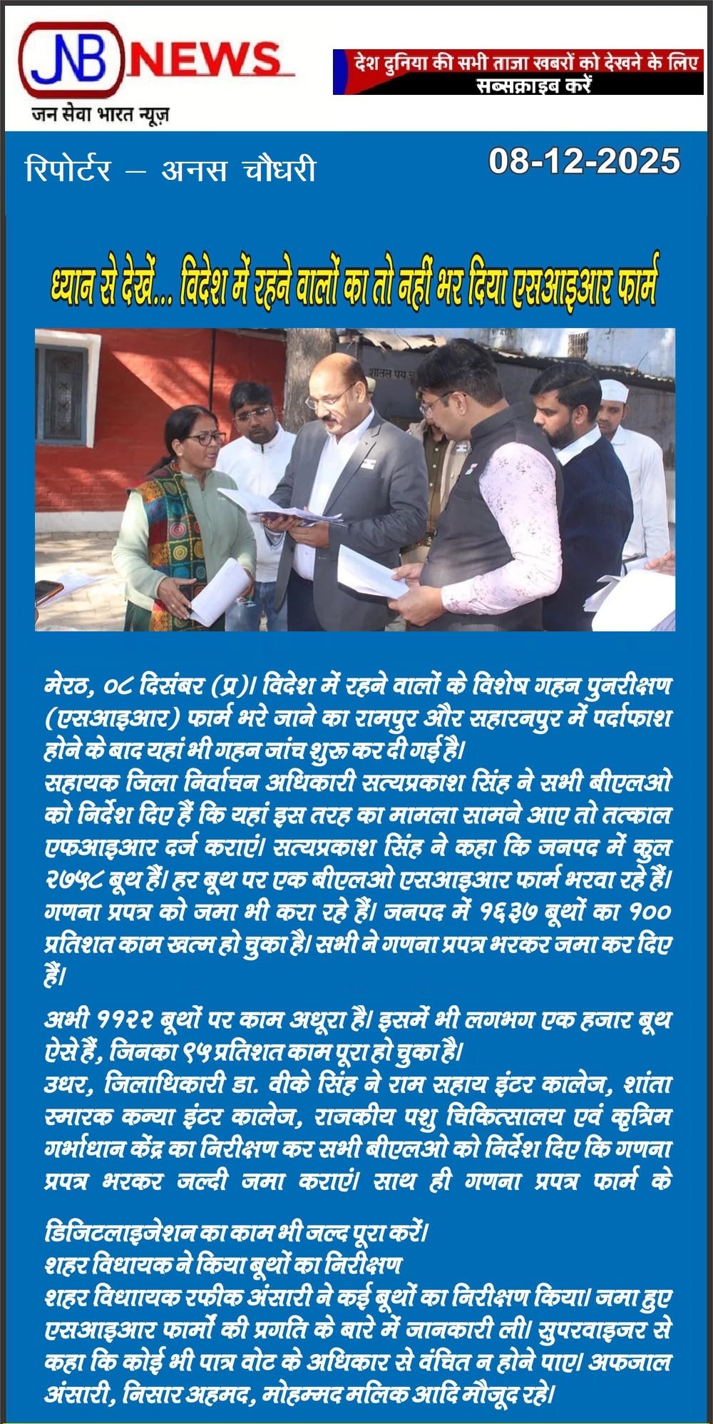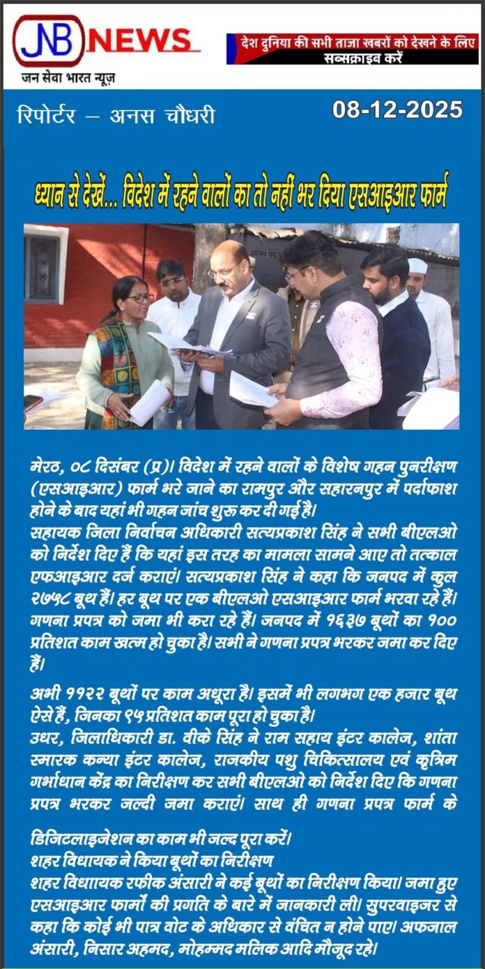 HomeBlogविदेश में रहने वालों का तो नहीं भर दिया एसआईआर फार्म .....? Blog विदेश में रहने वालों का तो नहीं भर दिया एसआईआर फार्म …..? By Mohd Anas 8 December 2025 0 27 Share FacebookTwitterPinterestWhatsApp Share FacebookTwitterPinterestWhatsApp Previous articleमुरादाबाद मुख्यमंत्री की समीक्षा के दौरान महिला का हंगामा सर्किट हाउस के गेट पर परिजनों के साथ लेटी महिला भोजपुर पुलिस पर महिला ने लगाए गंभीर आरोप महिला की नाबालिग बेटी के साथ 4 लड़कों ने की थी अश्लील हरकते दबंगों ने महिला के पति के साथ मारपीट भी कीNext articleमुरादाबाद के नगर पंचायत भोजपुर धरमपुर पति ने कराई पत्नी की गुमशुदगी कीरिपोर्ट दर्ज Mohd Anas RELATED ARTICLES Blog मुरादाबाद के.बिलारी में नाबालिग लड़की को भगाने वालाआरोपी गिरफ्तार: पॉक्सो एक्ट सहित विभिन्नधाराओं में केस दर्ज, जेल भेजा गया 27 December 2025 Blog मुरादाबाद के.पुलिस ने किया महिला सम्मानसमारोहः मिशन शक्ति के तहत महिलाओं को.सुरक्षा कानूनों की जानकारी दी गई 26 December 2025 Blog समाजवादी पार्टी के सबसे मजबूत दावेदार हैं सुधीर चौहान 26 December 2025 LEAVE A REPLY Cancel reply Comment: Please enter your comment! Name:* Please enter your name here Email:* You have entered an incorrect email address! Please enter your email address here Website: Save my name, email, and website in this browser for the next time I comment. - Advertisment - - Advertisment - Most Popular मुरादाबाद के.बिलारी में नाबालिग लड़की को भगाने वालाआरोपी गिरफ्तार: पॉक्सो एक्ट सहित विभिन्नधाराओं में केस दर्ज, जेल भेजा गया मुरादाबाद के.पुलिस ने किया महिला सम्मानसमारोहः मिशन शक्ति के तहत महिलाओं को.सुरक्षा कानूनों की जानकारी दी गई समाजवादी पार्टी के सबसे मजबूत दावेदार हैं सुधीर चौहान मुरादाबाद में रेलवे ट्रैक पर लेटा युवक, सामने से आ रही थी मालगाड़ी, लोगों ने देखा तो निकल गयी चीख, पूरा मामला जान हिल... Load more