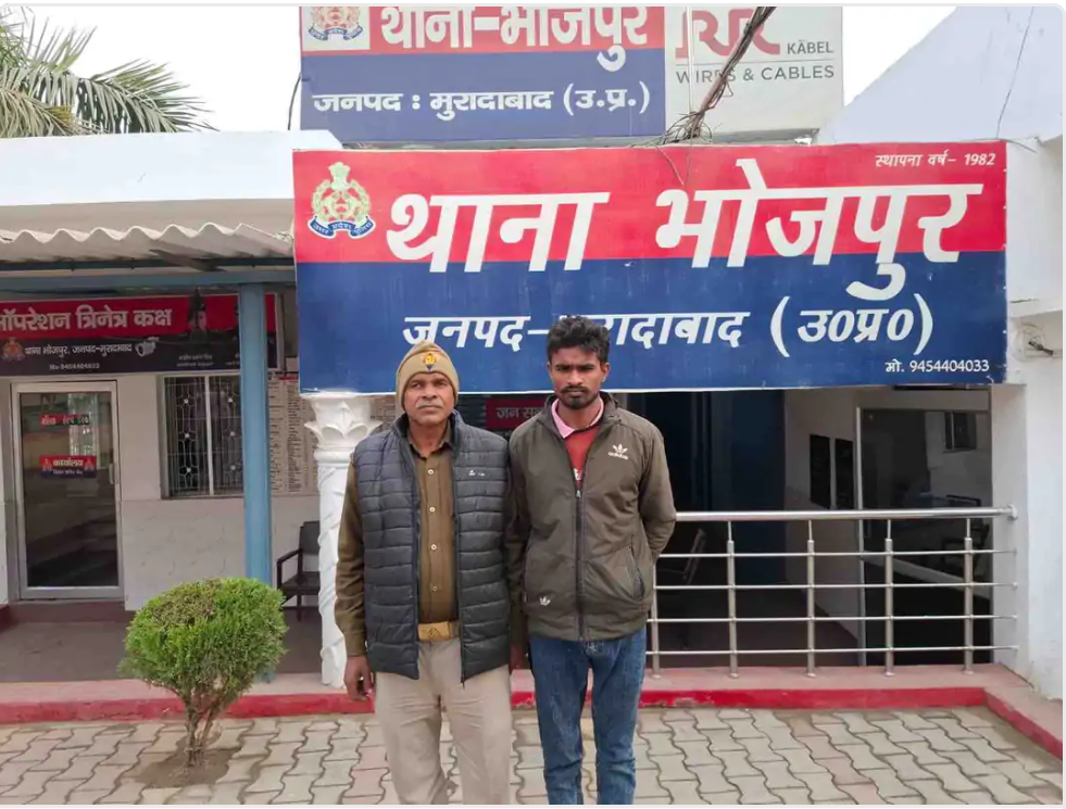 पुलिस व युवक । मुरादाबाद के थाना भोजपुर