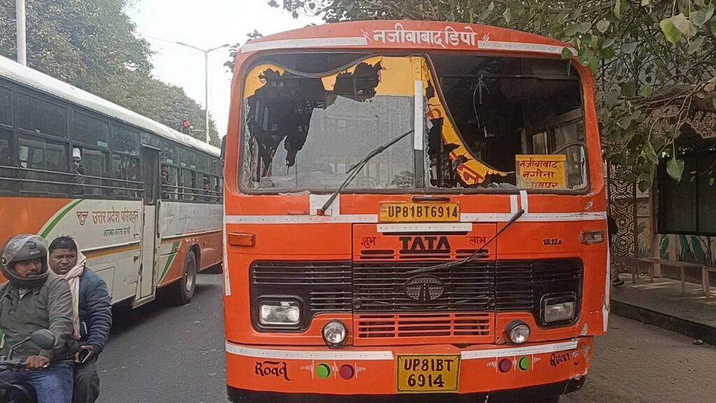 लोगों ने की रोडवेज बस में तोड़फोड़ – फोटो : संवाद