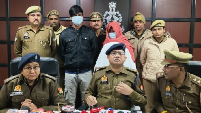 हापुड़ : जनपद के थाना पिलखुवा पुलिस व जनपदीय स्वाट टीम ने पिलखुवा थाना क्षेत्र के गांव छिजारसी में गन्ने के खेत में सूटकेस में मिले महिला कंकाल मिलने के मामले में घटना का खुलासा करते हुए महिला सोनिया को मौत के घाट उतारने वाले एक महिला सहित दो हत्यारोपियों को गिरफ़्तार कर उनके कब्ज़े से मृतका महिला सोनिया का मोबाइल फोन समेत तीन मोबाइल फोन, दो केश मिमो बुक व हत्या की वारदात में प्रयुक्त डंडा बरामद किया है एएसपी विनीत भटनागर नें बताया की थाना पिलखुवा पुलिस व जनपदीय स्वाट टीम ने गन्ने के खेत में सूटकेस में मिले एक अज्ञात महिला के शव की घटना का खुलासा करते हुए एक महिला सहित दो हत्यारोपी को गिरफ्तार किया है।जिनके कब्जे से मृतका का मोबाइल फोन सहित तीन मोबाइल फोन, दो कैश मीमो बुक व आलाकत्ल डण्डा बरामद किया है हत्यारोपी अंकित ने बताया कि उसे मृतका सोनिया पसन्द थी, उनसे मृतका सोनिया के साथ शारीरिक संबंध बनाने के लिए कहा तो उसने मना कर दिया था। जिस पर अंकित ने मौका पाकर सोनिया के साथ जबरन दुष्कर्म की वारदात को अंजाम दिया और अश्लील वीडियो भी बनाई।ज़ब मृतका सोनिया ने इसका विरोध किया तो पति पत्नी दोनों ने मिलकर 28 अगस्त को संजीता के सामने ही सोनिया को मौत के घाट उतार दिया और संजीता इसका विरोध न करे उसके साथ भी दुष्कर्म कर उसकी भी अश्लील वीडियो बनाई और संजीता उर्फ संगीता इसकी शिकायत पुलिस से न करें इसके लिए सोनिया के मृत शरीर के पास संजीता को खडी करके एक वीडियो भी बनाई और उससे यह कहलवा लिया था कि यह हत्या उसने की है।हत्यारोपियों ने खरीदे हुए सूटकेस मे सोनिया के शव को भरकर एक राह चलता ऑटो किराये पर लेकर छिजारसी टोल से आगे गाजियाबाद से मुरादाबाद को जाने वाले हाईवे के किनारे सर्विस रोड पर पास मे ही एक गन्ने के खेत मे रात्रि में फेंककर चले गए। फिलहाल पुलिस ने घटना का खुलासा करते हुए एक महिला सहित दो हत्या आरोपियों को गिरफ्तार कर सलाखों के पीछे भेज दिया है।