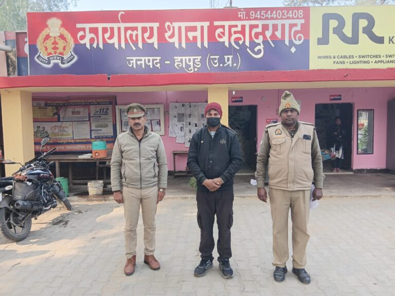 बहादुरगढ़। हापुड़ पुलिस द्वारा जनपद में अपराध की रोकथाम एवं वांछित अभियुक्तों की गिरफ्तारी हेतु चलाए जा रहे अभियान के अंतर्गत थाना बहादुरगढ़ पुलिस ने पत्नी पर जानलेवा हमले के मामले में फरार चल रहे एक अभियुक्त को गिरफ्तार किया है आरोपी पर अपनी पत्नी पर जानलेवा हमले का आरोप है आरोपी थाना बहादुरगढ़ क्षेत्र के गांव लुहारी का संजीव है पुलिस ने आरोपी को जेल भेज दिया है।