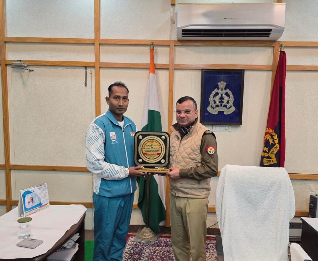 मुरादाबाद के हेड कांस्टेबल गगन पासवान को उत्तर.प्रदेश मास्टर्स स्टेट बैडमिंटन प्रतियोगिता में स्वर्ण पदकजीतने पर सम्मानित किया गया है।वरिष्ठ पुलिस अधीक्षक (एसएसपी) मुरादाबादमंगलवार को उन्हें यह सम्मान प्रदान किया।नेगगन पासवान ने बरेली में 9 जनवरी से 11 जनवरी2026 तक आयोजित इस प्रतियोगिता में मुरादाबादपुलिस का प्रतिनिधित्व किया था। उन्होंने मेंस डबल्स35 प्लस वर्ग में सर्वश्रेष्ठ प्रदर्शन करते हुए स्वर्ण पदकहासिल किया।एसएसपी मुरादाबाद ने गगन पासवान के उत्कृष्ट प्रदर्शनकी सराहना की। उन्होंने पासवान को भविष्य कीप्रतियोगिताओं के लिए भी शुभकामनाएं दीं और उन्हेंइसी तरह कड़ी मेहनत जारी रखने के लिए प्रोत्साहितकिया।