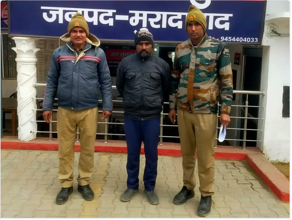 मुरादाबाद के थाना भोजपुर पुलिस की गिरफ्तार में आरोपी ।