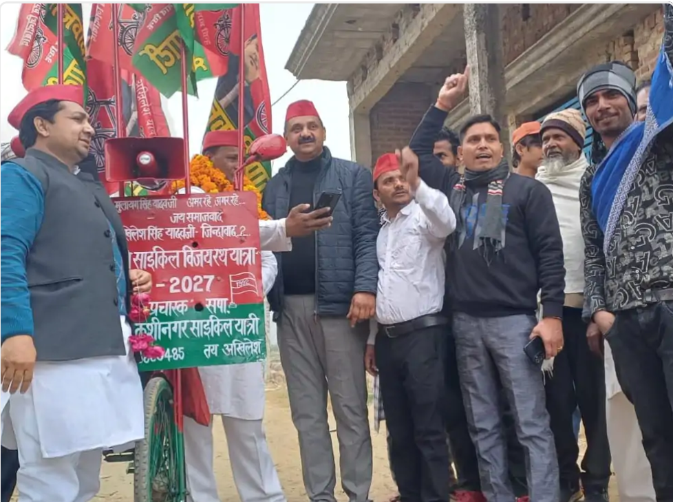 उत्तर प्रदेश के मुरादाबाद समाजवादी पार्टी के प्रचारक कन्हैया लाल निषादअपनी साइकिल यात्रा के तहत मुरादाबाद के विकासखंड मूंढापांडे क्षेत्र के दलपतपुर पहुंचे। इस यात्रा काउद्देश्य पूरे प्रदेश में समाजवादी पार्टी की नीतियों और.उपलब्धियों को आम जनता तक पहुंचाना है।निषाद ने बताया कि वे कई सालों से ‘समाजवादी.साइकिल रथ यात्रा’ के माध्यम से प्रदेश भर में सपासरकार की उपलब्धियों का प्रचार कर रहे हैं। यह यात्रापार्टी के जनसंपर्क अभियान का एक महत्वपूर्ण हिस्साहै। इस अवसर पर मुरादाबाद सपा जिलाध्यक्ष जयवीरसिंह यादव ने पत्रकारों से बात की।उन्होंने दावा किया कि 2027 में उत्तर प्रदेश में.समाजवादी पार्टी की सरकार बनेगी। ‘एसआईआर'(संभवतः मतदाता सूची पुनरीक्षण) के संबंध में उन्होंने.कहा कि समाजवादी पार्टी का हर कार्यकर्ता इस कार्यमें सक्रिय रूप से भाग ले रहा है, ताकि किसी भी सहीमतदाता का वोट न कटने पाए।