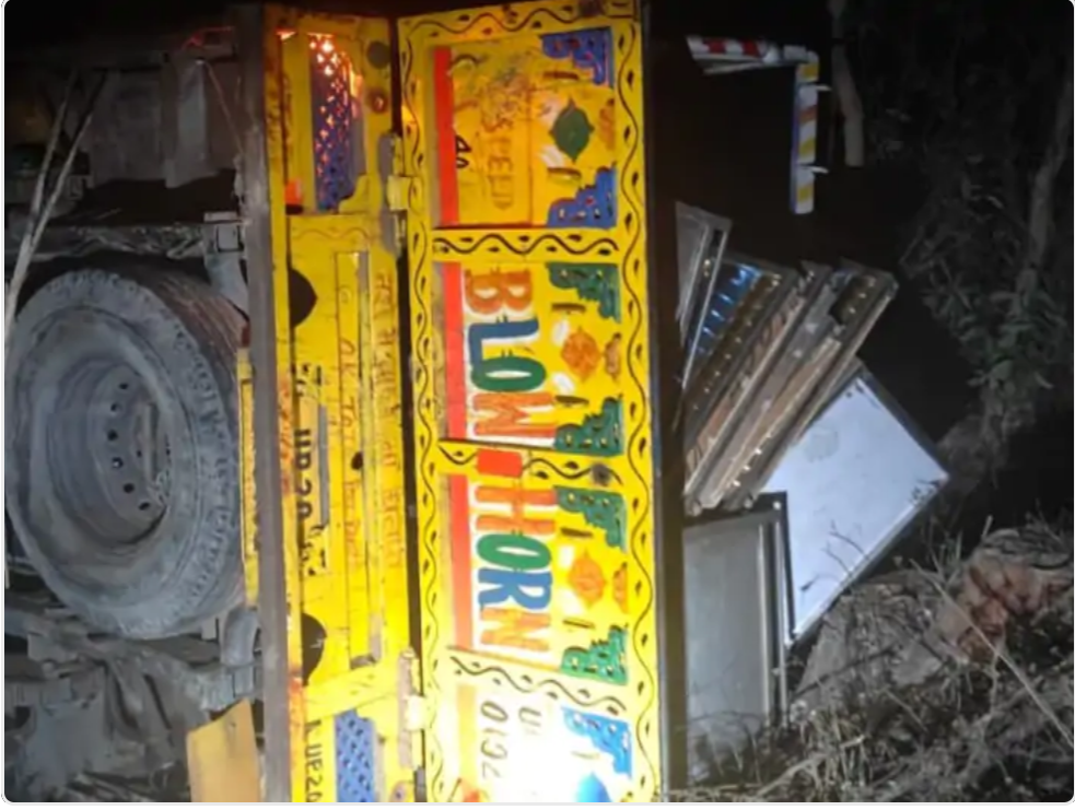 पिकअप की फोटो पलटा हुई