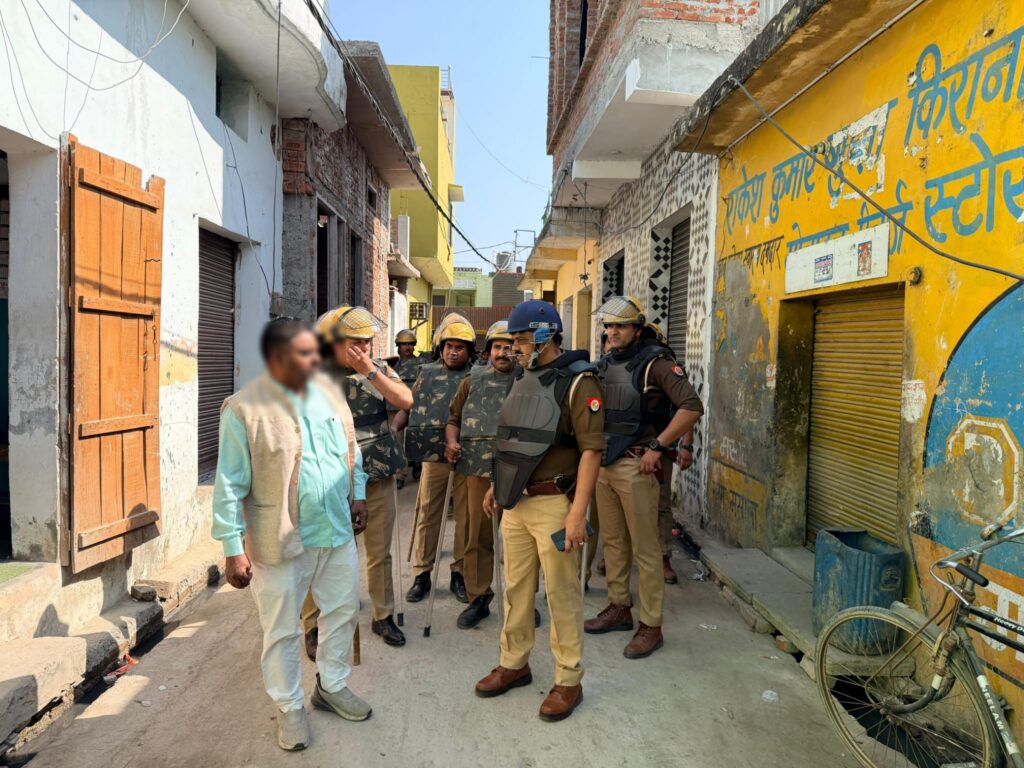 पुलिस ने भगतपुर, भदगवां, दौलपुरी, चांदपुर, जाहिदपुर, चौराहा डूंगरपुर,बुढानपुर अलीगंज सहित विभिन्न क्षेत्रों में अमन शांति और कानून व्यवस्थाबनाए रखने के लिए फ्लैग मार्च निकाला। थाना प्रभारी राजीव कुमारशर्माने अराजक तत्वों को चेतावनी दी कि शांति को नुकसान पहुंचाने पर कड़ीकार्रवाई की जाएगी।