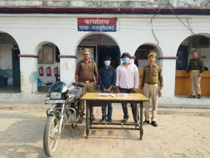 थाना गढ़मुक्तेश्वर पुलिस ने त्वरित कार्यवाही करते हुए मोटरसाइकिल पर लिफ्ट देकर लूट करने की घटना का सफल अनावरण करते हुए गिरफ्तार कर लिया है पुलिस ने आरोपियों के कब्जे से लूट की घटना से संबंधित समान 3500 नगदी एक घड़ी एयरफोन आधार कार्ड व एक मोबाइल फोन तथा घटना में प्रयुक्त मोटरसाइकिल एवं अवैध तमंचा व कारतूस बरामद किया है आरोपी थाना सिम्भावली के गांव रतूपुरा का सुभान उर्फ पठान तथा अठसैनी का समीर है पुलिस ने दोनों को जेल भेज दिया है।